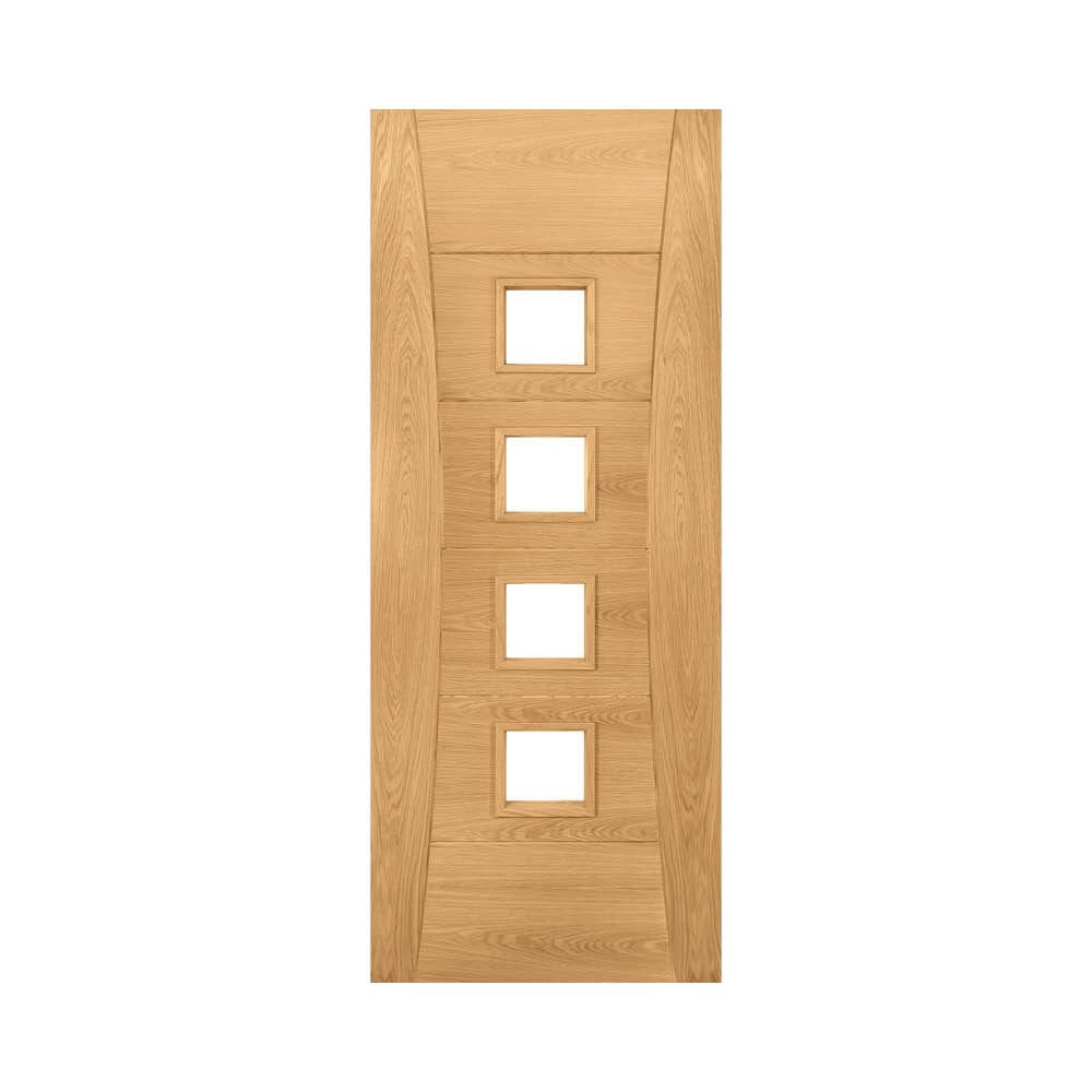 Safety and style unite with this FD30 fire-rated oak door featuring clear glass panels. The Deanta Pamplona Prefinished Oak Internal FD30 Fire Door with Glass offers essential fire protection alongside natural light flow. Third party certified by Q-Mark and Certified for at least 30 minutes of fire resistance, this door features a factory prefinished oak frame with clear safety glass inserts — perfect for compliant yet stylish interiors.