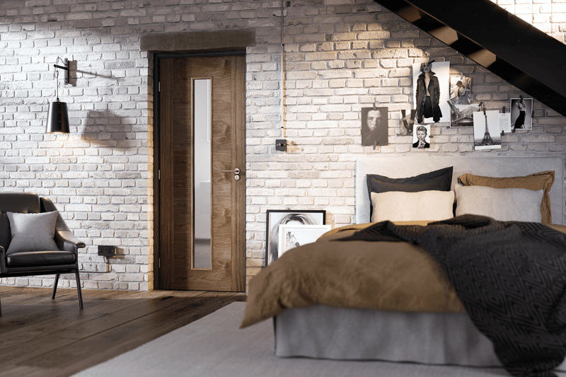 Sofia 1L Pre-Finished Walnut Doors 610 mm x 1981 mm, Sofia 1L Pre-Finished Walnut Doors 686 mm x 1981 mm, Sofia 1L Pre-Finished Walnut Doors 726 mm x 2040 mm, Sofia 1L Pre-Finished Walnut Doors 762 mm x 1981 mm, Sofia 1L Pre-Finished Walnut Doors 826 mm x 2040 mm, Sofia 1L Pre-Finished Walnut Doors 838 mm x 1981 mm. The distinct, warm walnut grain pattern and contrasting side panels makes this door a stylish choice with the added benefit of a veritcal light with clear glazing in the centre of the Sofia